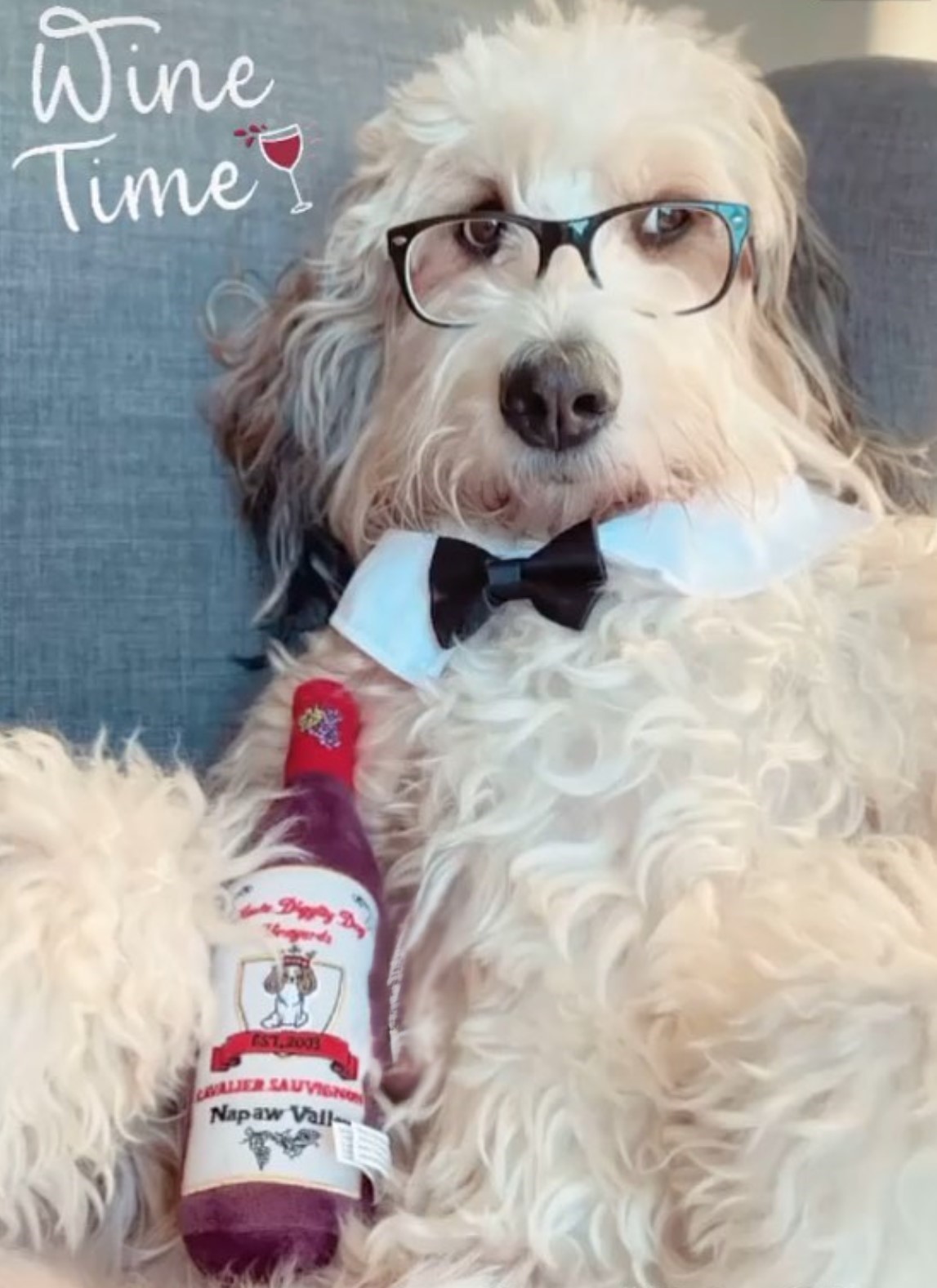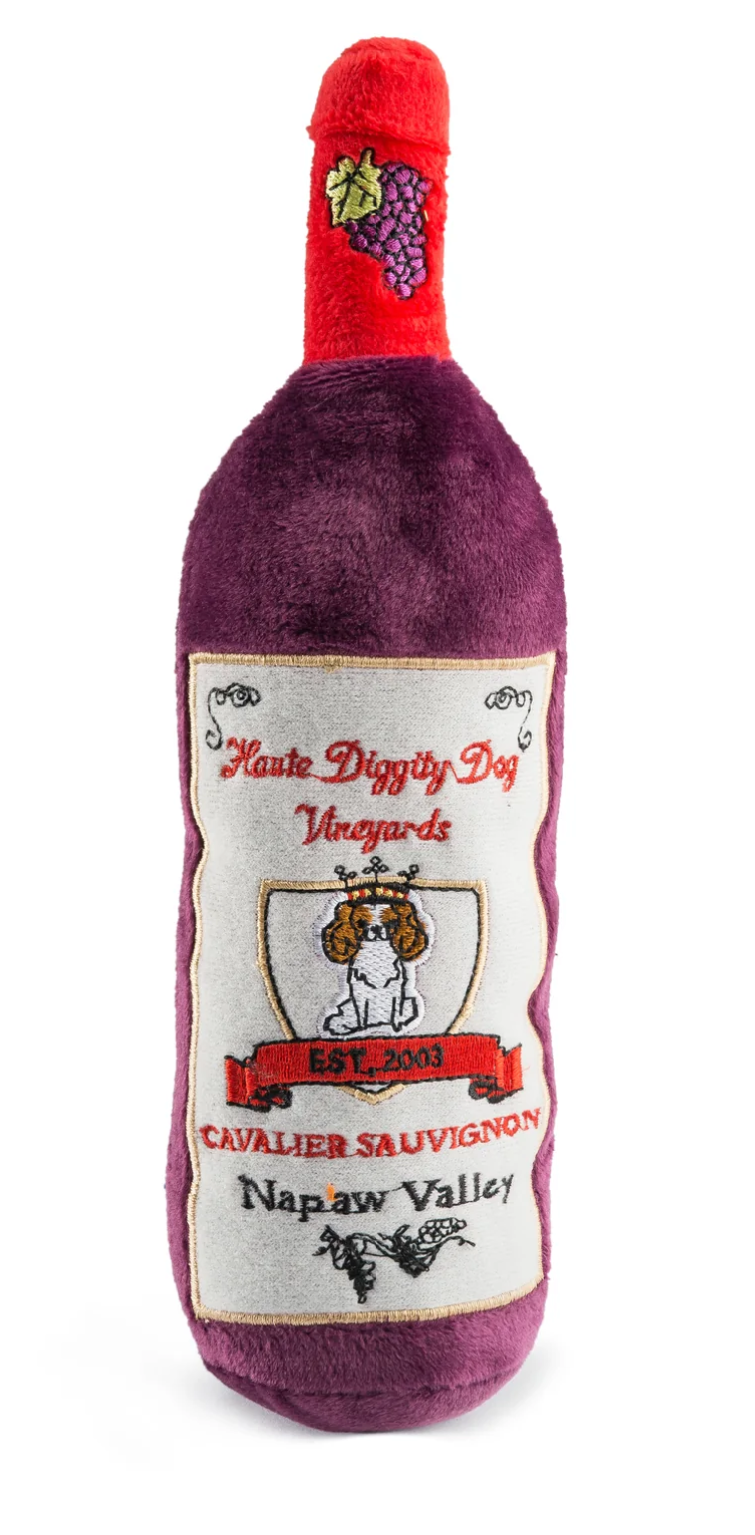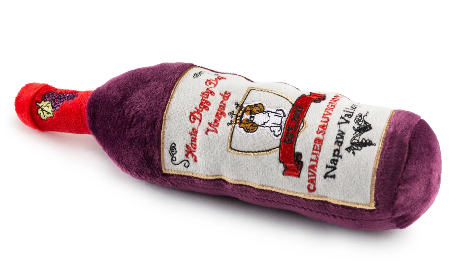 At PUCCI Cafe, alongside our carefully curated wine menu, we offer a selection of wine bottle dog toys for your classy pup! The Cavalier Sauvignon wine bottle toy is made from soft plush and features a fun squeaker inside.