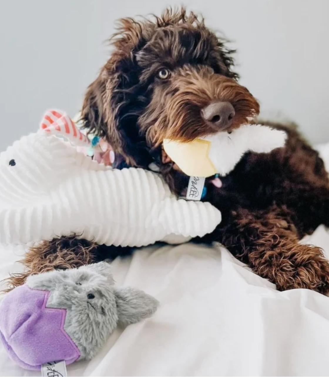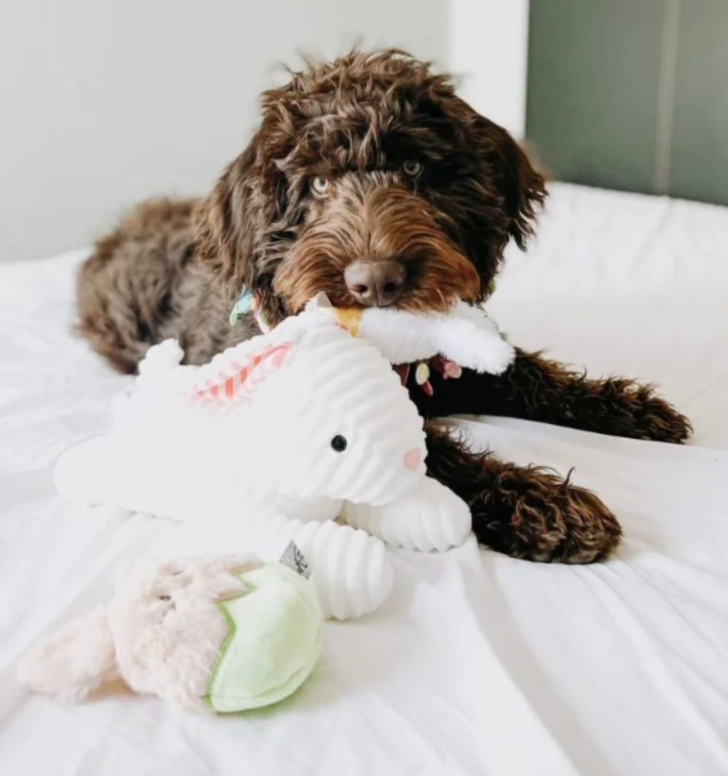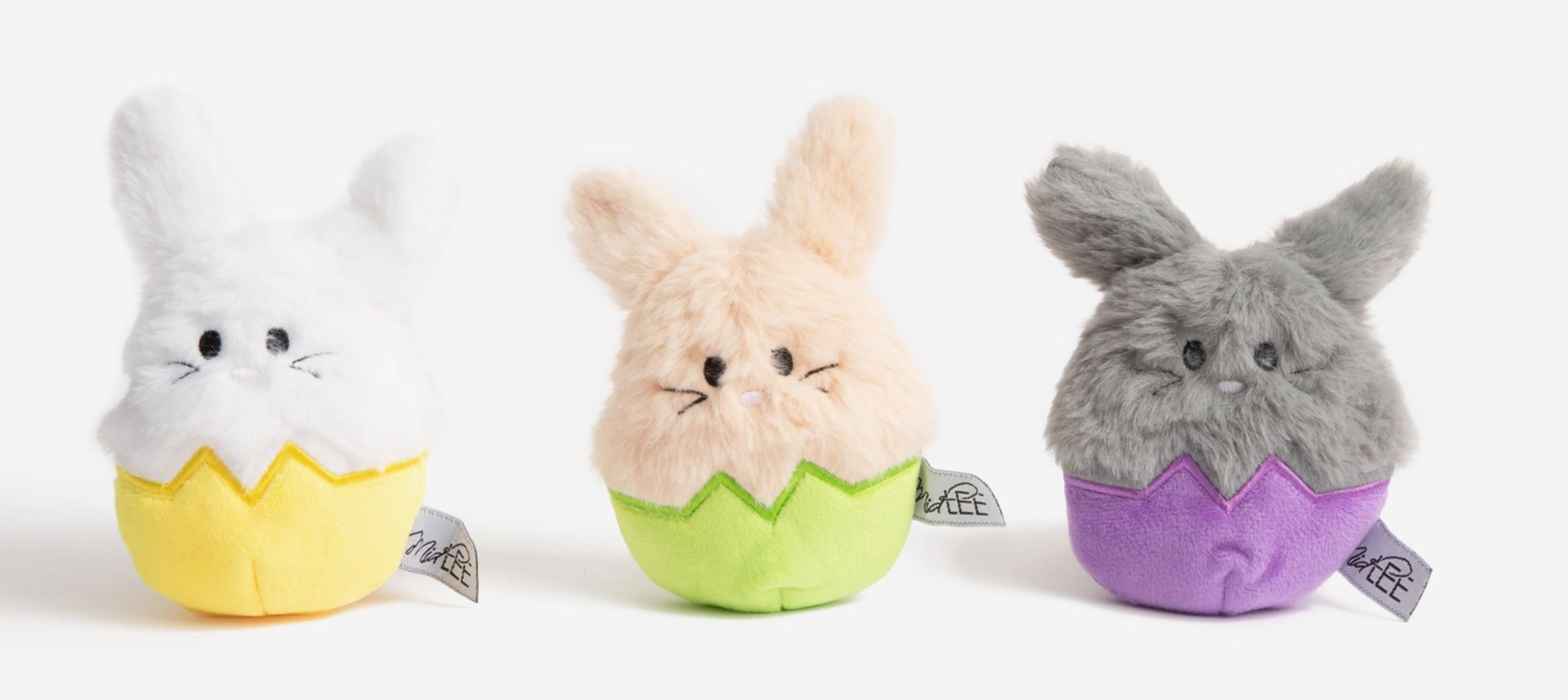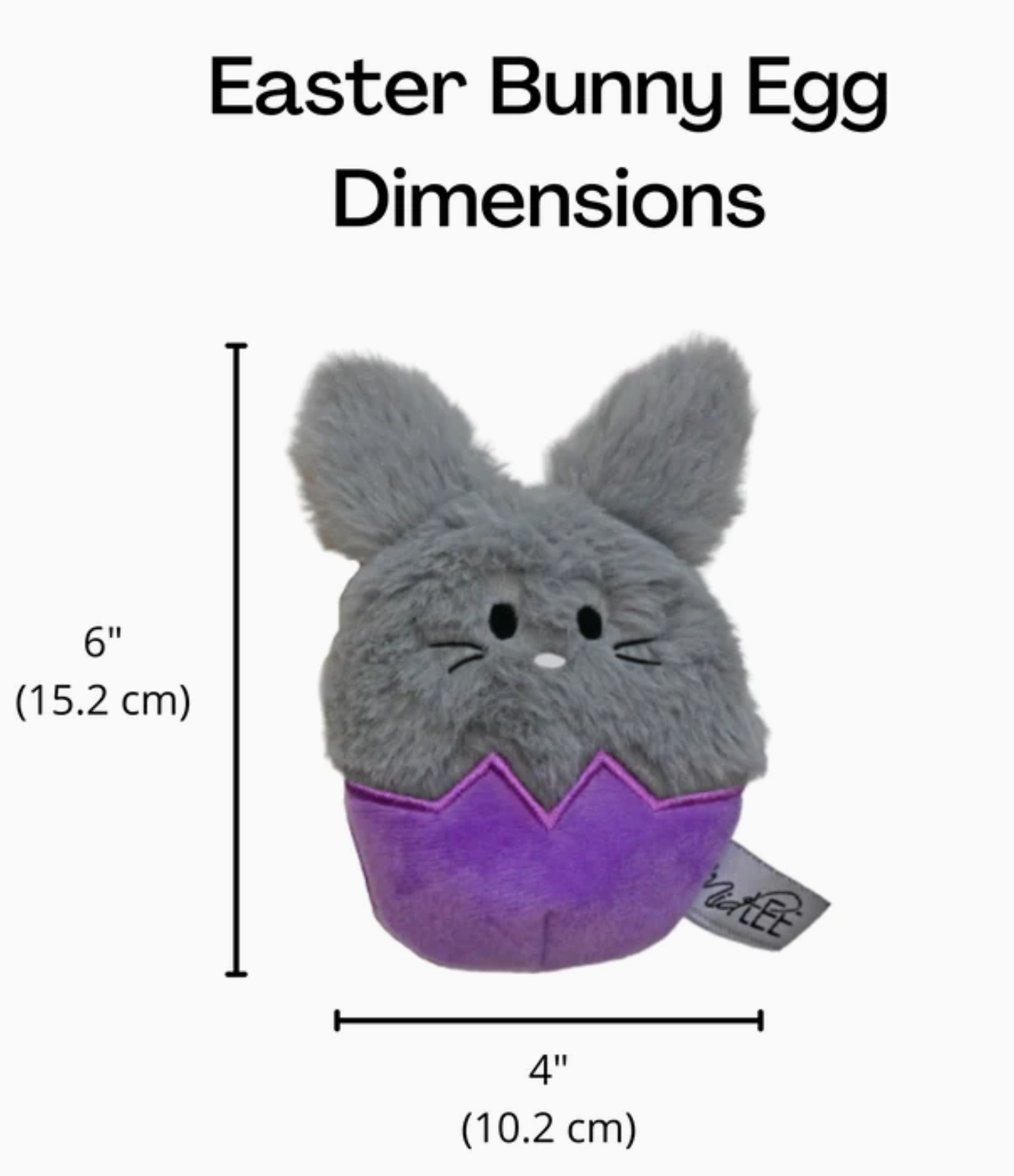 How exciting for Easter! Each Easter Bunny Egg toy stands at about 6″ tall, making them the perfect basket filler for your pup! Fluffy and festive, these adorable toys are sure to delight. Plus, each one includes a squeaker for added fun!