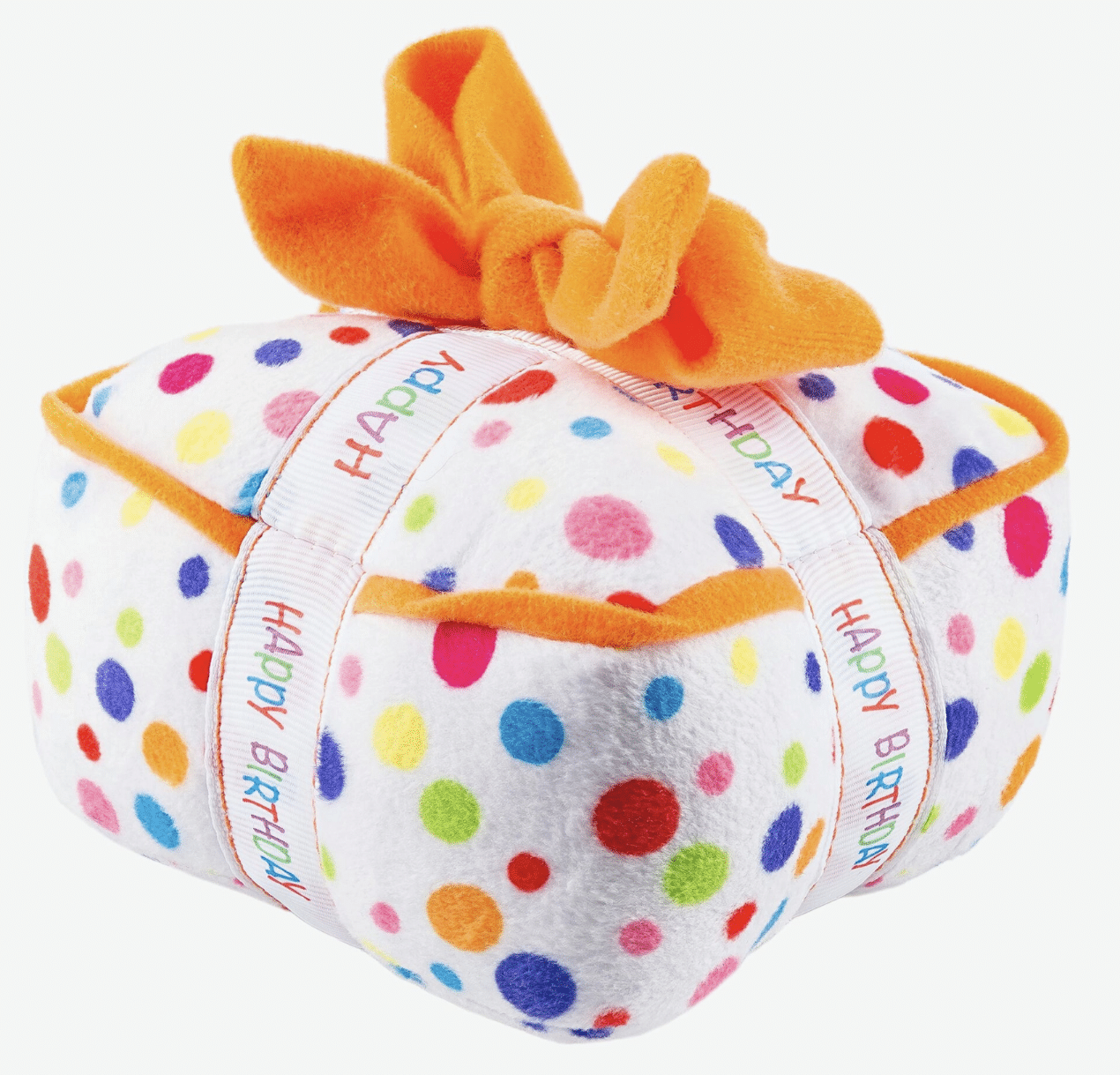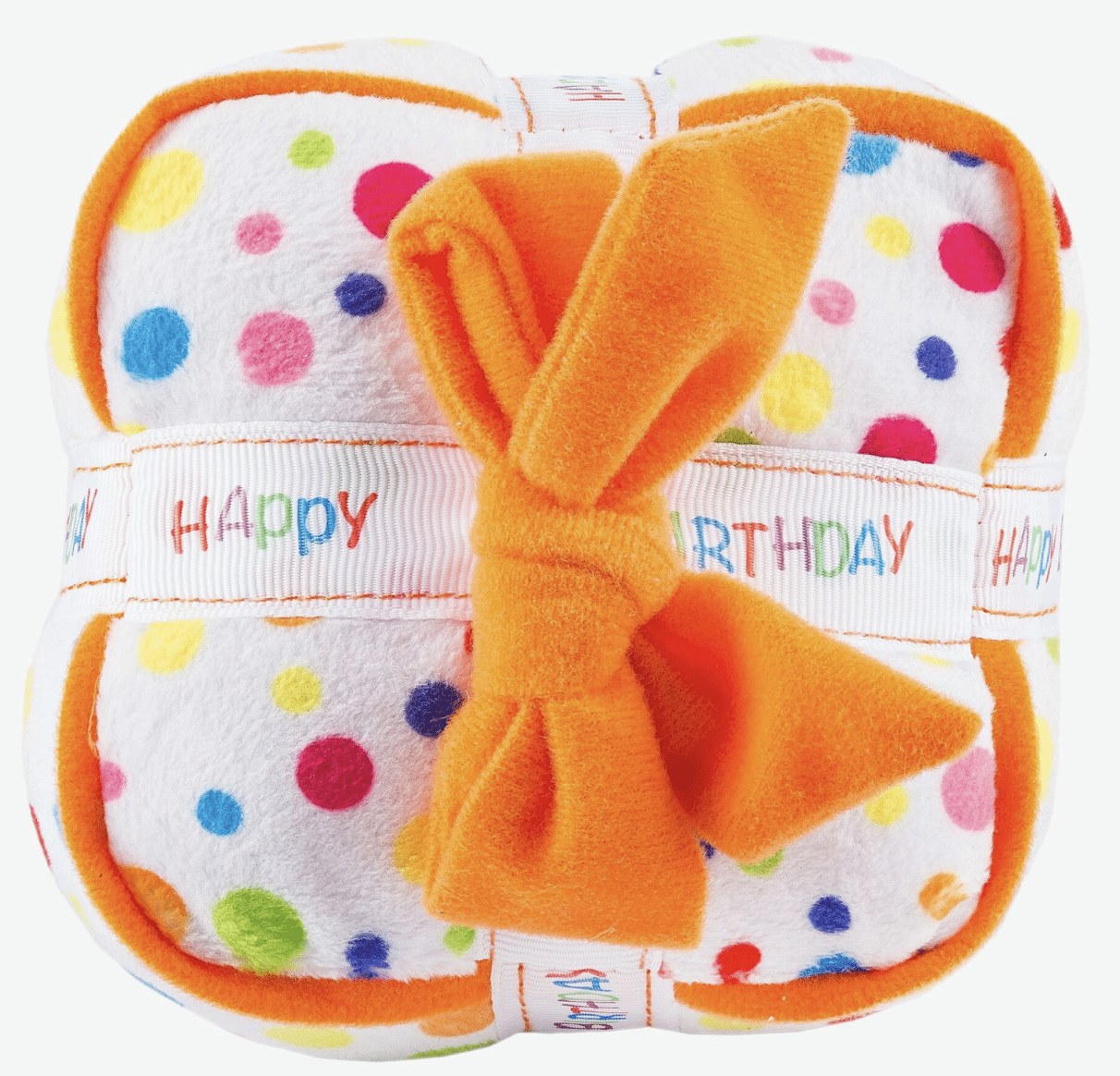 Happy Birthday Gift Box Toy is another fun way to celebrate your pups birthday! Comes with a cute sewn in orange bow on top.