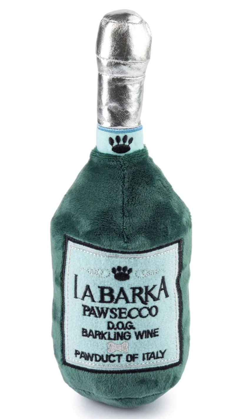 Turn any moment into a celebration with a bottle of bubbly for your pup! Introducing our new LaBarka Pawsecco, the ideal toy for a barking good time. The narrow neck is perfect for tug-of-war, while the wide body is designed for chewing. Plus, every bite releases a delightful chirp from the hidden squeaker inside!