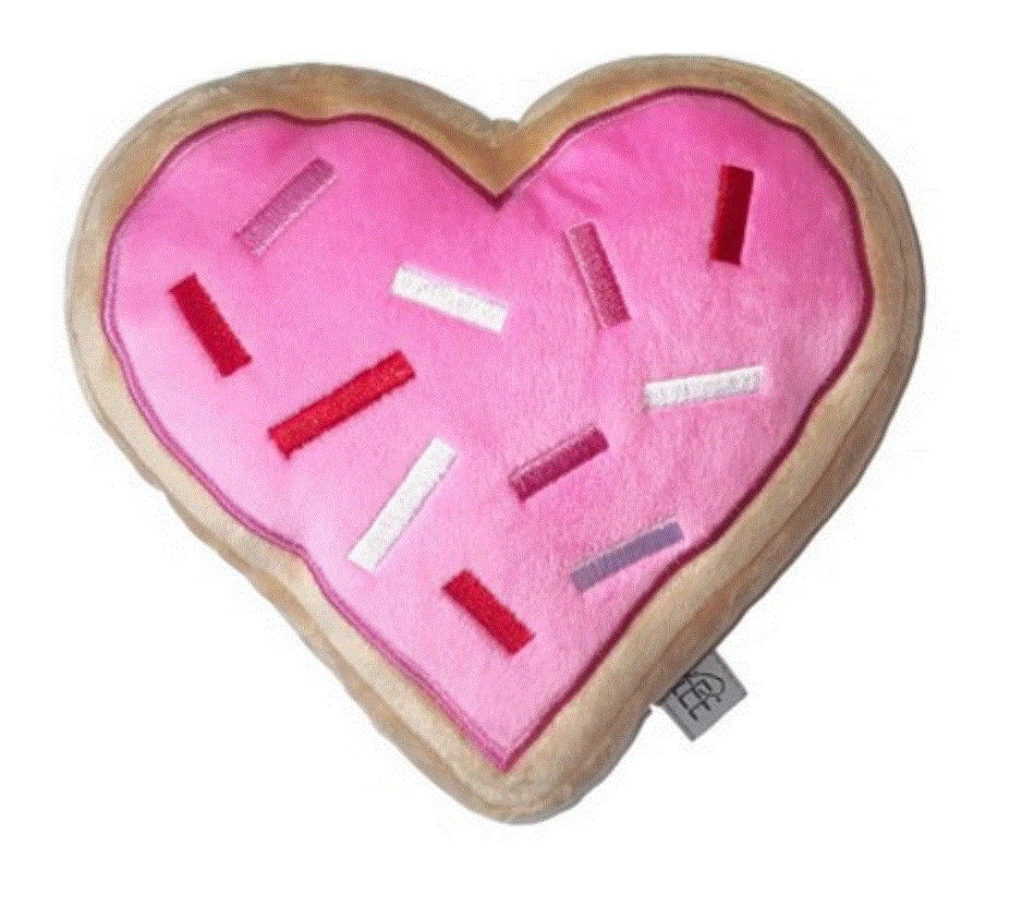 Modeled after your favorite sugar cookies, this Pink Sugar Cookie Dog Toy is a delightful, festive gift for your furry friend. Shaped and decorated like a heart-shaped sugar cookie, this soft plush toy is perfect for playtime. While you and your family indulge in Valentine’s Day chocolates and treats, your pup can enjoy endless fun with this adorable squeaky toy!