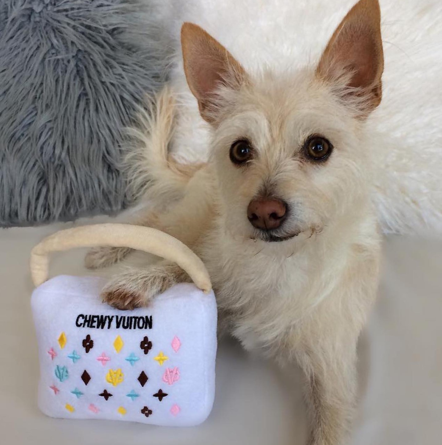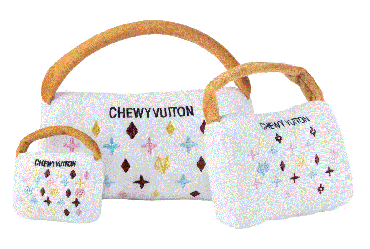 The handbag every woman wants is now the toy every dog needs. Plush exterior with a squeaker that every dog loves. Every Pampered PUCCI should have one. Available in 3 sizes: