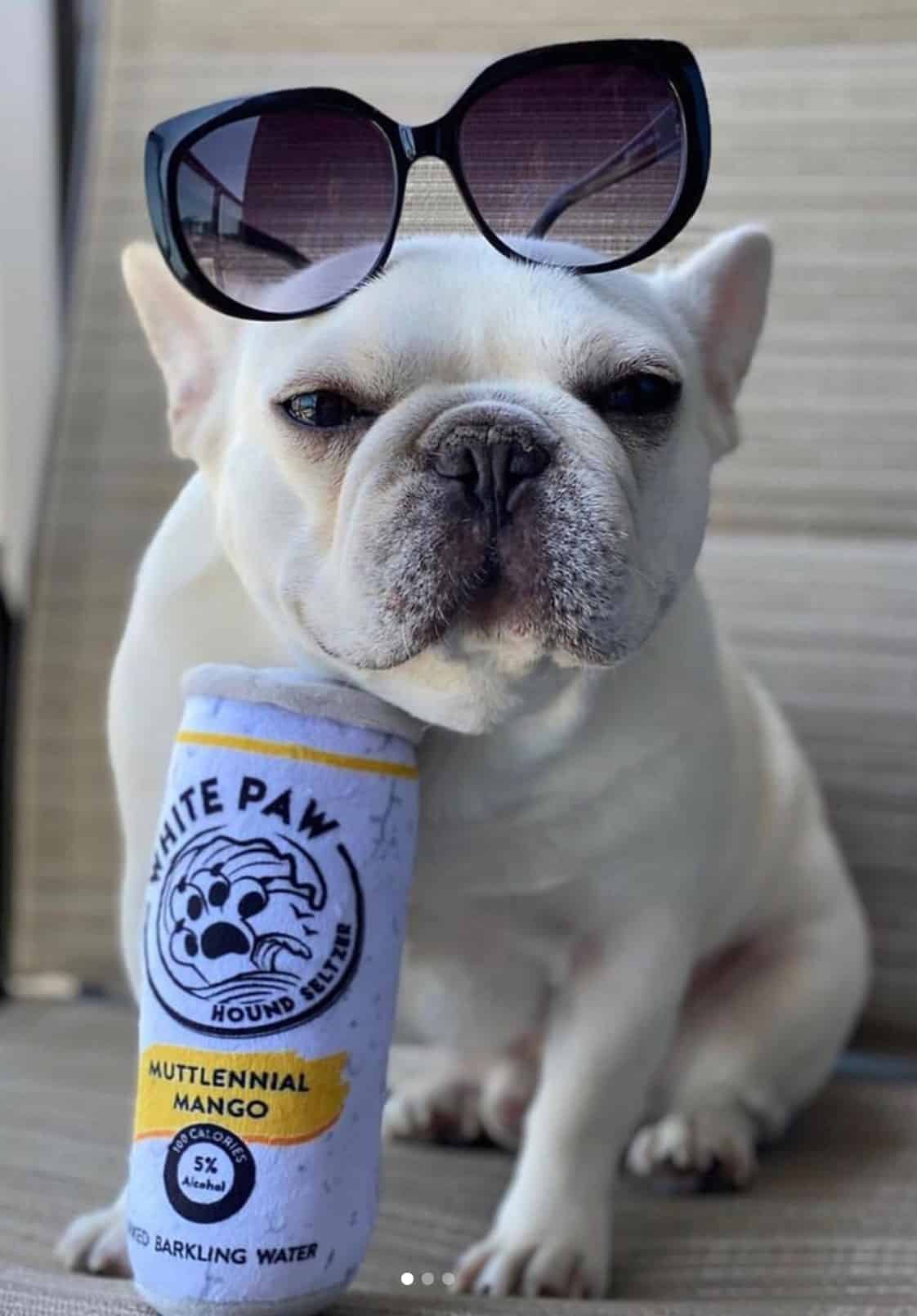 Relax with a White Claw while your PUCCI Cafe pup has fun with the latest addition to our Balocco Collection: the White Paw – Muttlennial Mango toy!