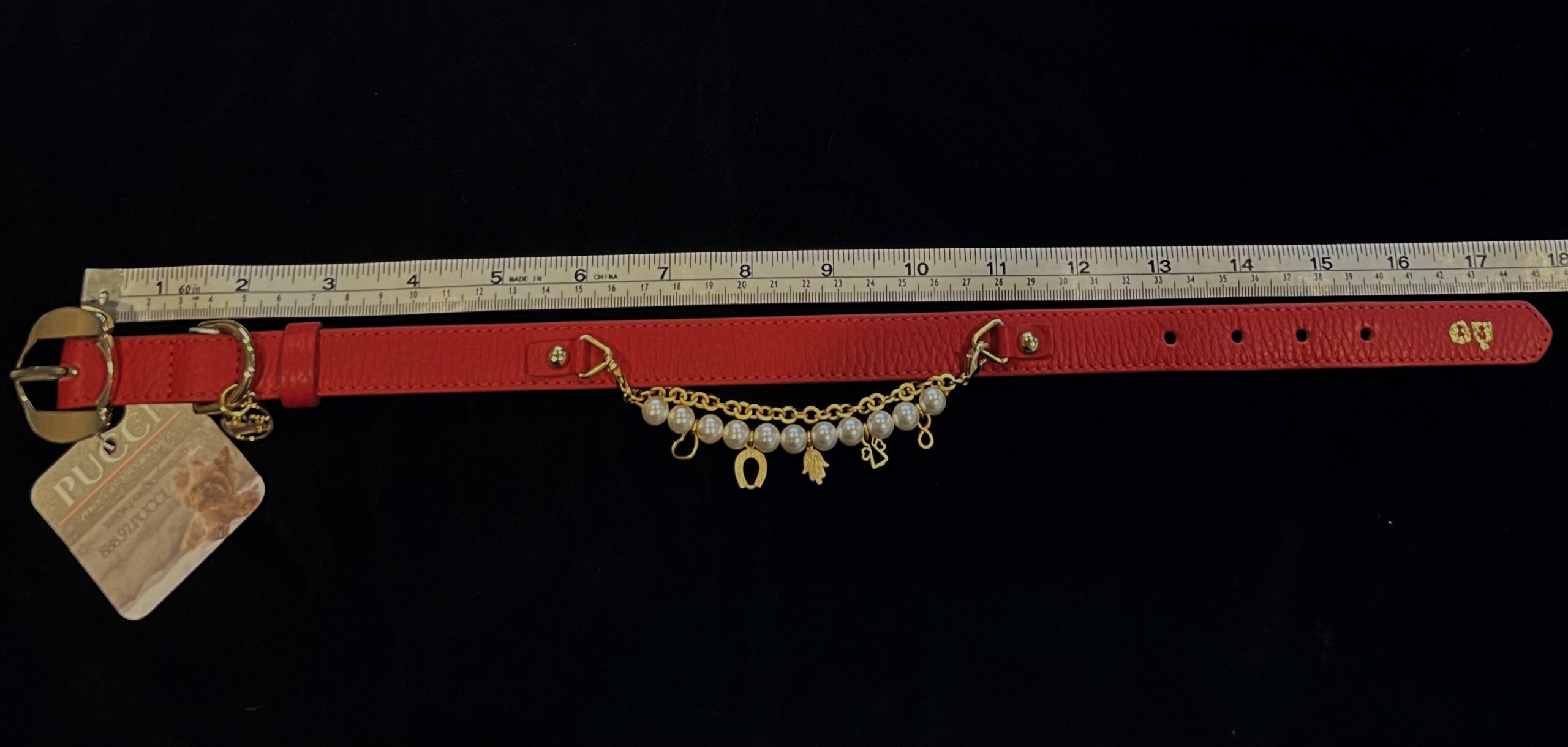 This leather outside, suede inside collar with Moshiqa signature dog shaped buckle has its beautiful pearls and charms. Our Monalisa Dog Collar Red makes sure to adorn your pets neck in all the luck and love we can offer.