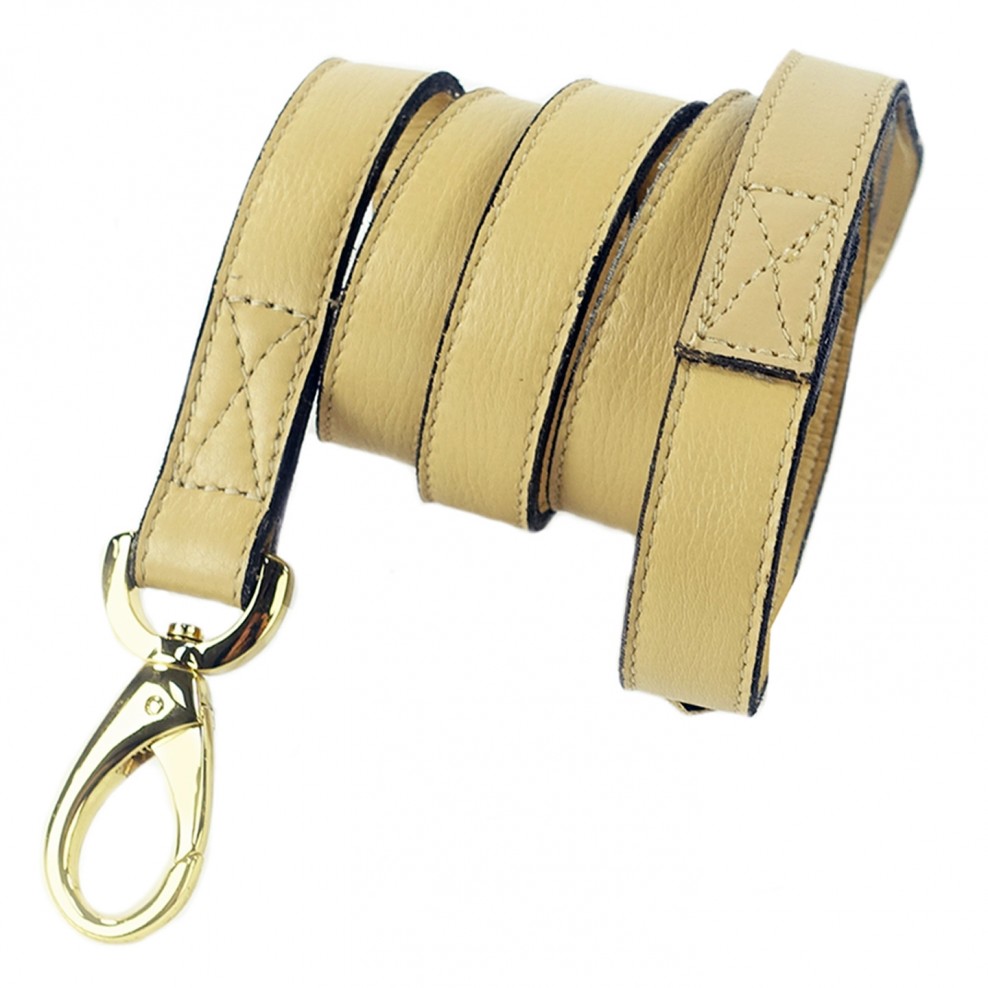 Elegance personified. This gorgeous soft Italian full grain Athena Vanilla Leather Leash is so elegant. Its finished on both sides. Its Easy on and off dog clip has a polish gold finish, from Italian hardware. It would match perfectly with the Athena Vanilla Leather Collar with Gold. An iconic look to classic high fashion.