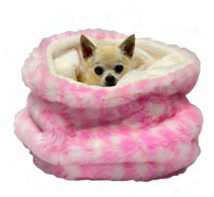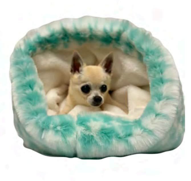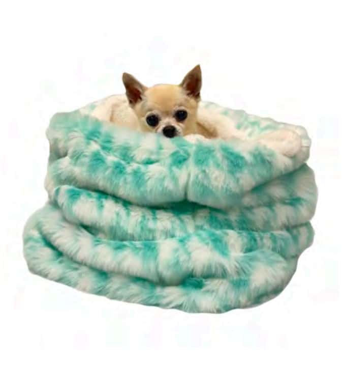 Cuddle Cozy Bed that will make you want to curl up in this new sack bed with your pup if it were big enough for both of you! Available in Pink Houndstooth and Teal Blue Houndstooth.