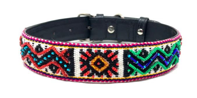 If you are looking for products for your pet that are sustainable and have an ethnic and handmade touch, this is the perfect collection for you. Dog collars made by the Kamëntšá indigenous people who live in the Sibundoy Valley, Colombia. These pieces are hand-woven by indigenous artisans in wool chumbes, embroidered with chakiras, and reinforced in 100% natural leather with zamak hardware to guarantee their resistance. The designs include millenary symbols inspired by the ancestral culture of the Kamëntšá ethnic group. The birds’ nest, the eye of God, water, among other symbols that express their way of seeing and interpreting the world in their natural environment. This collection connects you with the magical world through Andean ethnic art that writes a story and weaves thoughts. Your dog, brings you closer to the physical body and your cat connects you to the spiritual body healing your soul and understanding that you are One with all of nature. Collection created in collaboration with Soy Tribu by Veronica Huertas.