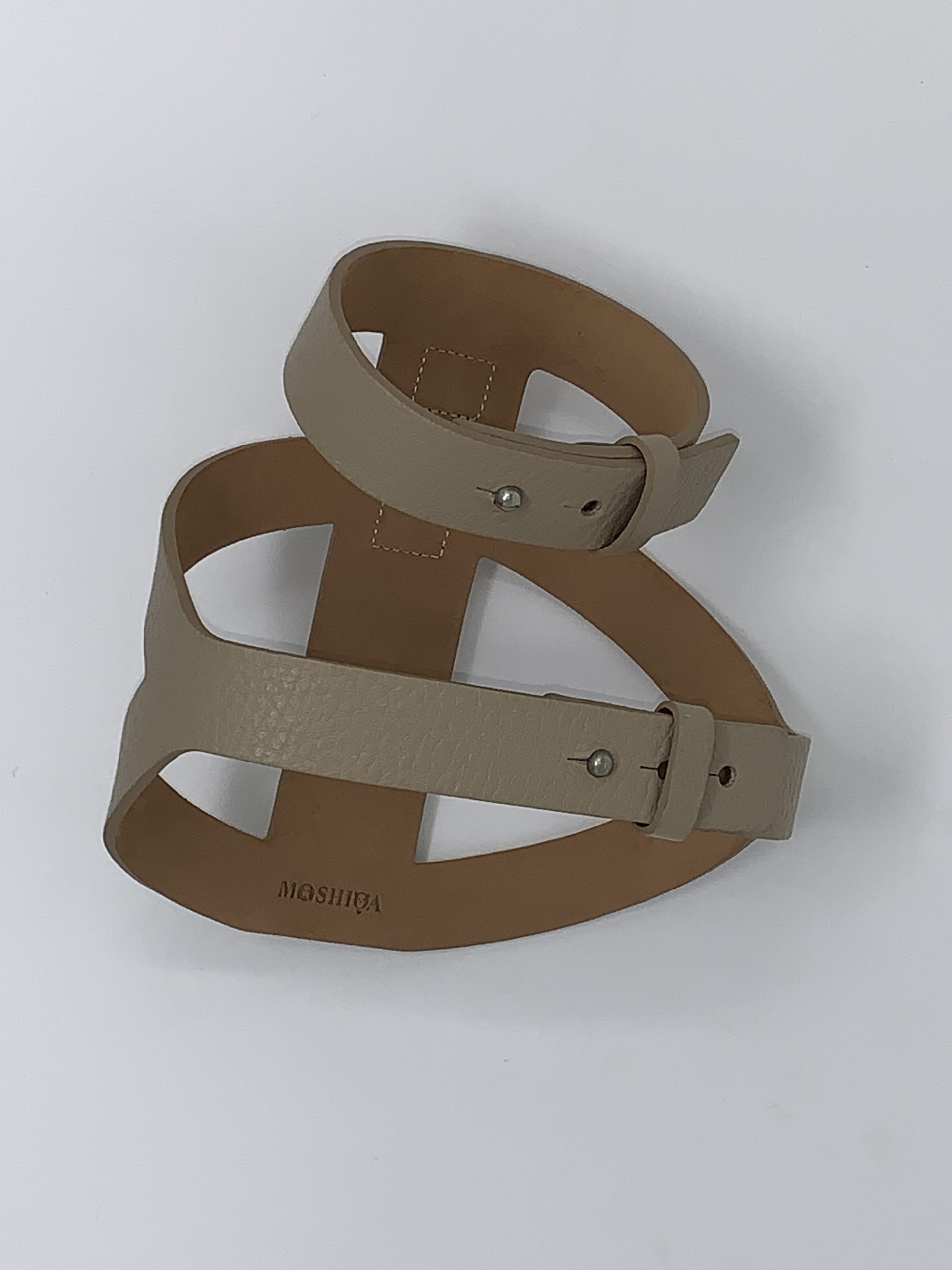 This bold, powerful and beautiful leather cage harness has adjustable straps. Suede on the inside.