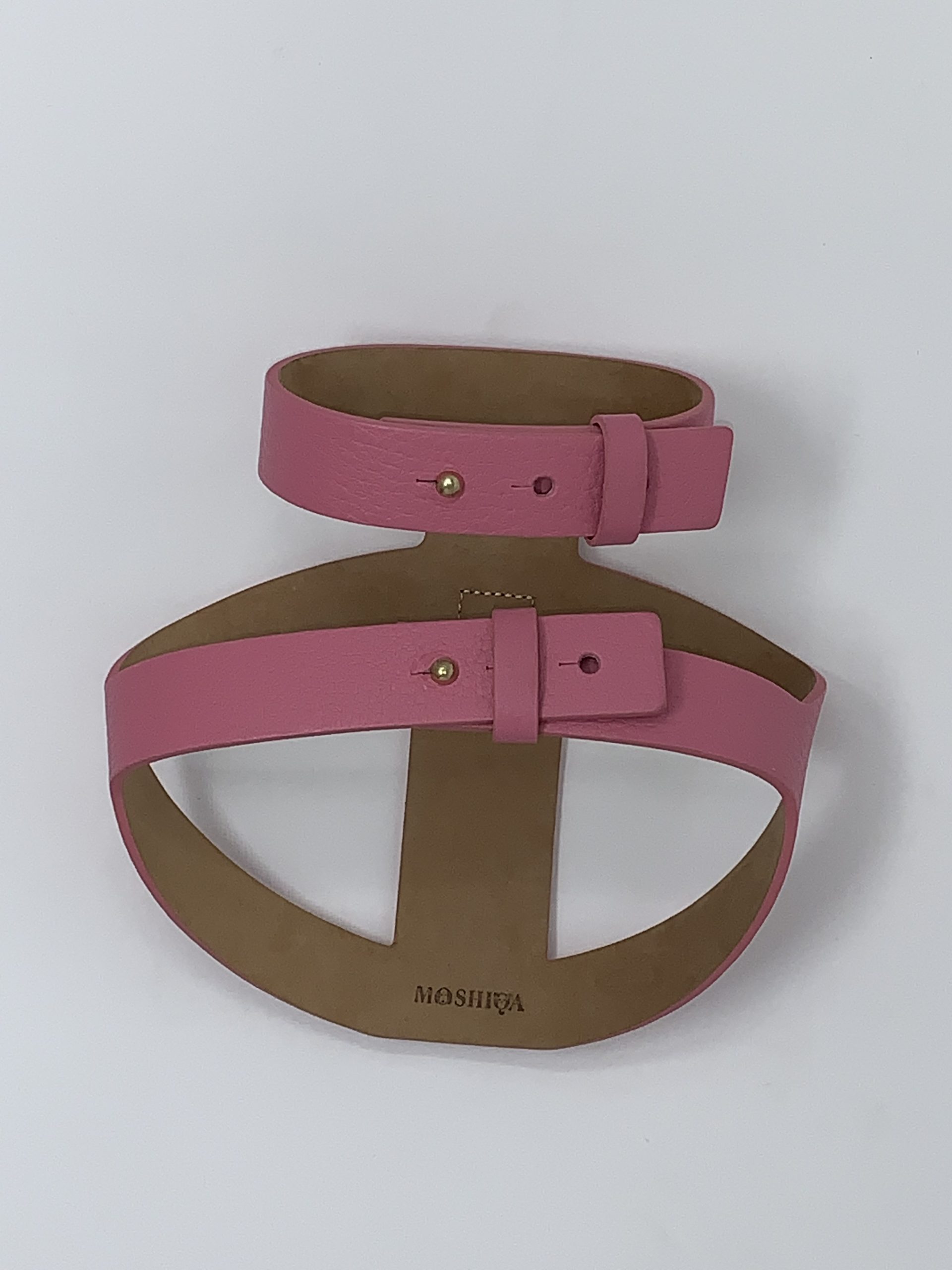 This fearless, powerful and beautiful leather cage harness has adjustable straps. Suede inside.