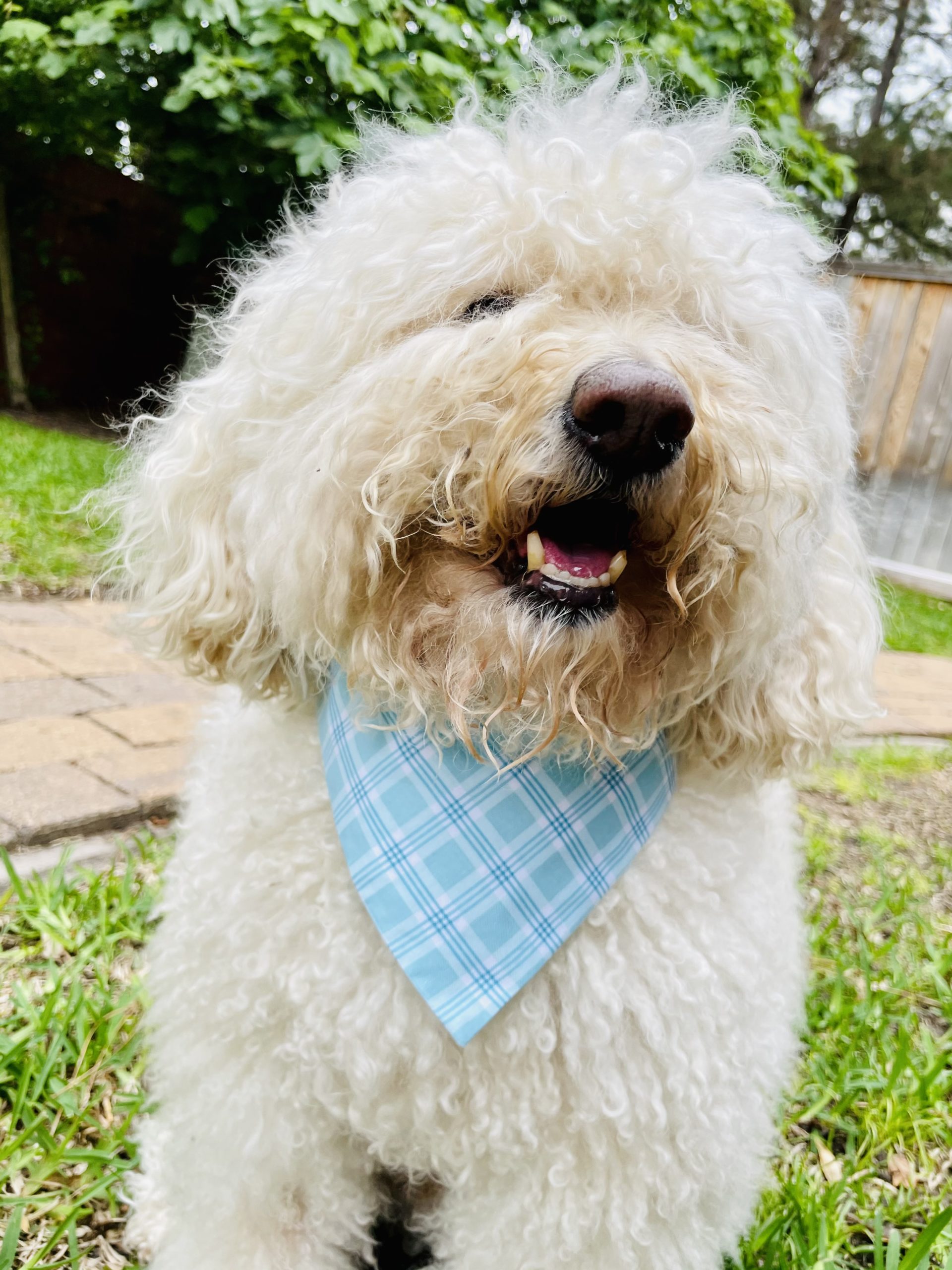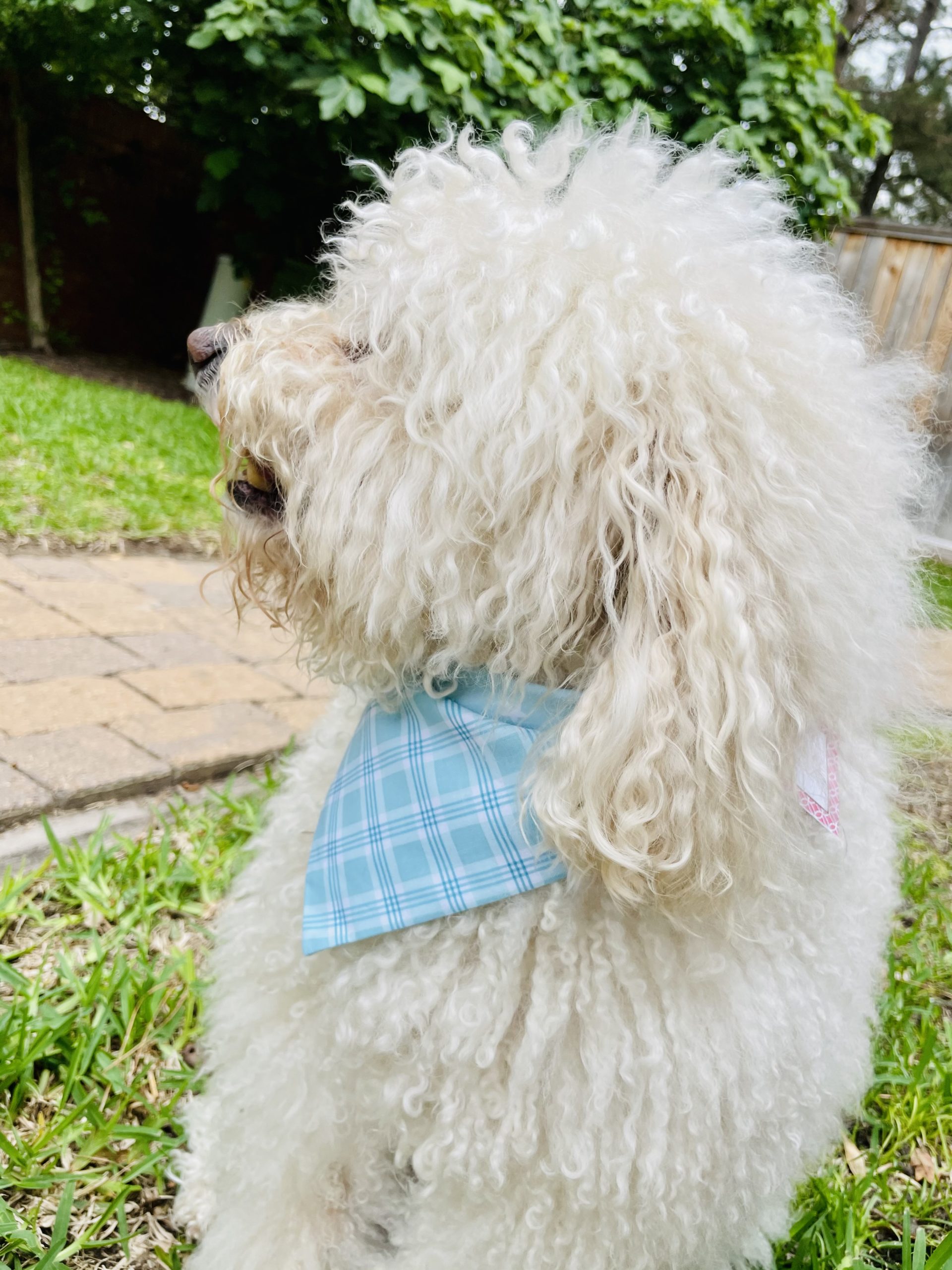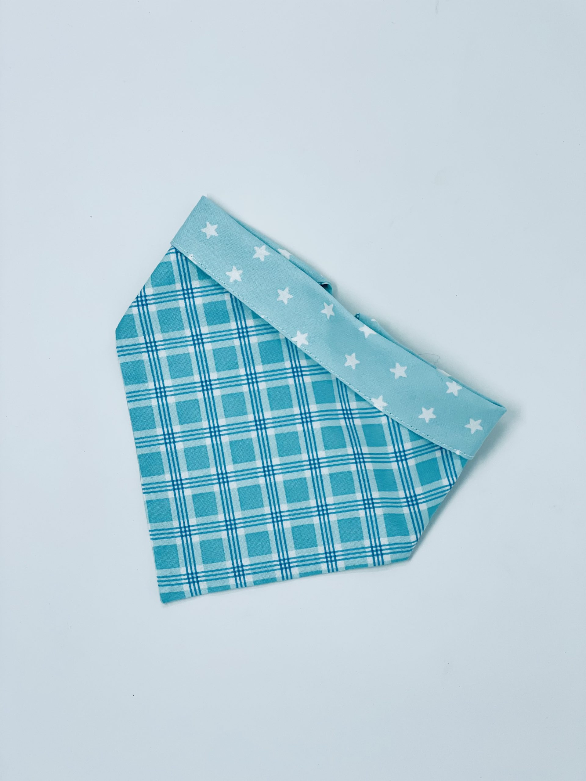 This beautiful light blue plaid pattern with thin darker blue plaid on front and stars on blue on back would look so cute for him or her during the Spring and Summer time. It is handmade in the USA. Easy Clasp to Clip.