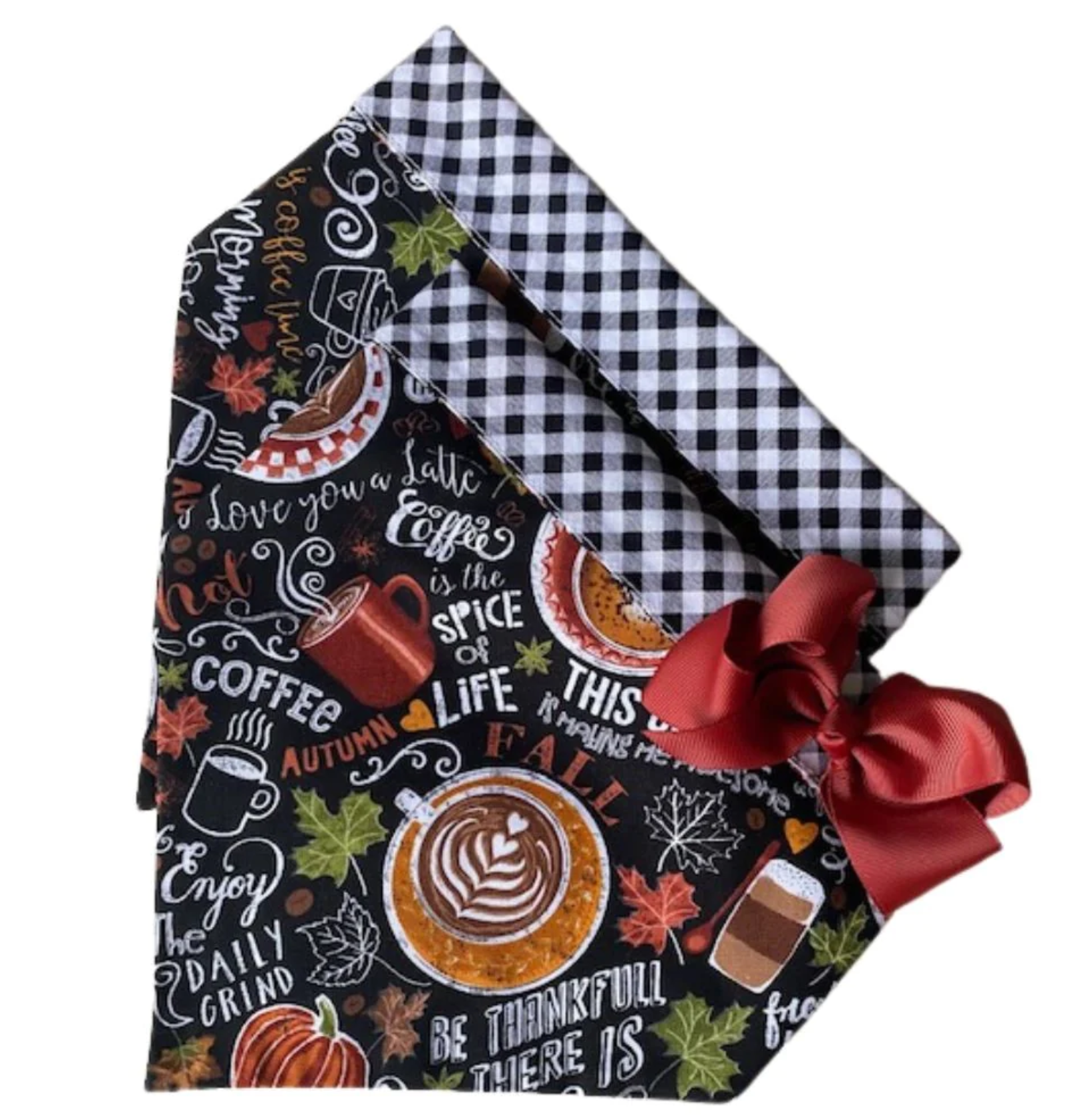 This cute themed Pumpkin Latte bandana with bow is always a good theme for your little girl to wear at PUCCI Cafe! It comes with a cute rust color bow.