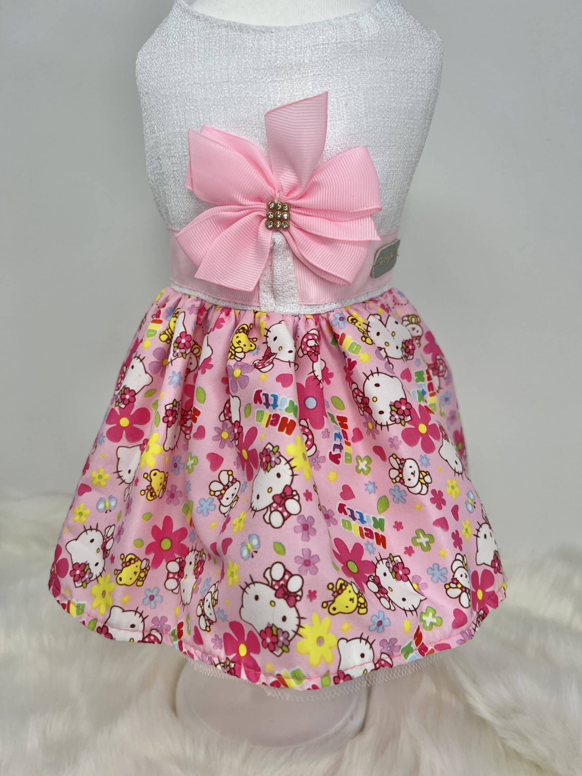 This beautiful Hello Kitty Halter Dog Dress is hand made and imported from Colombia. Velcro straps in the back.