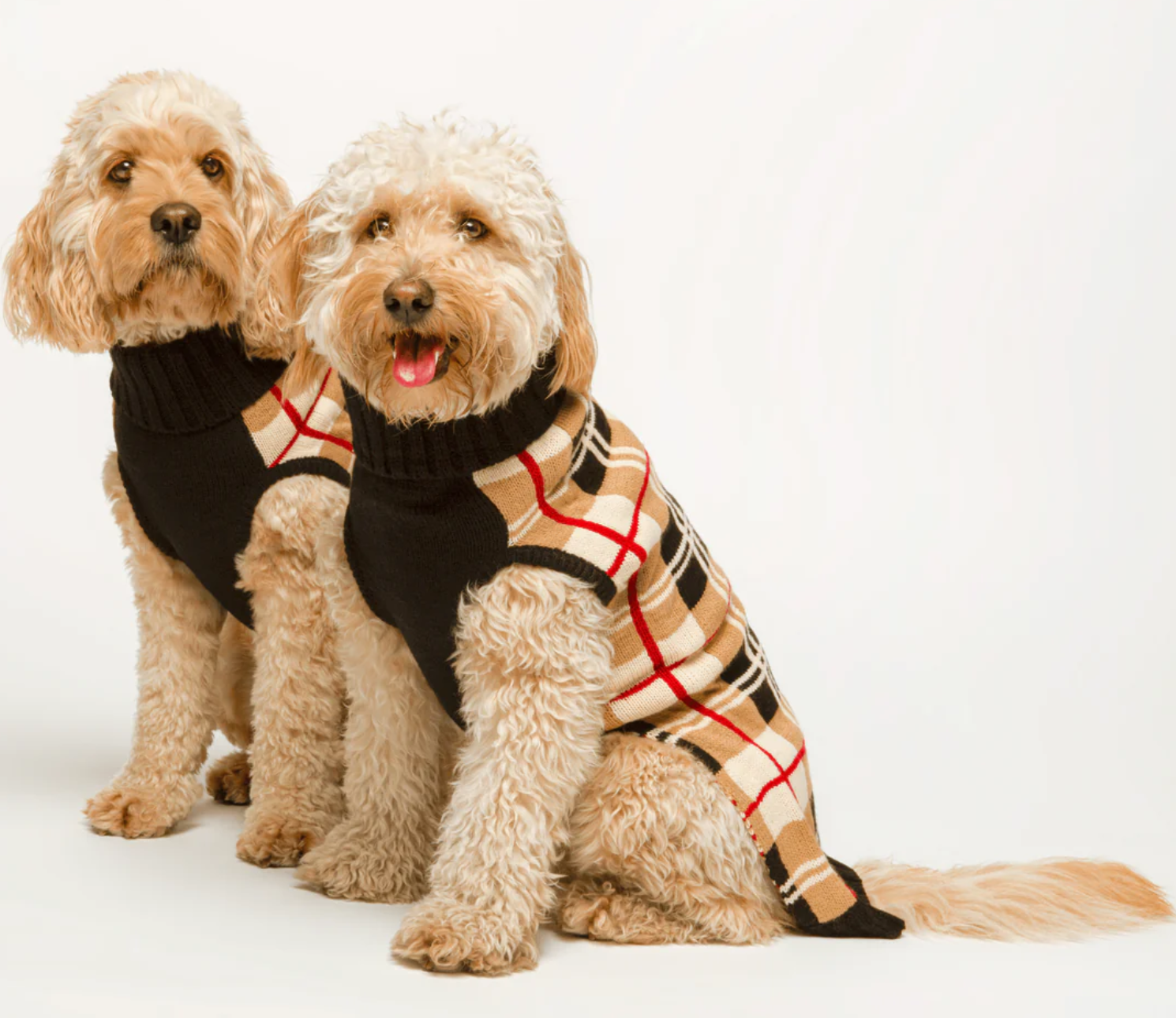 Indulge your dog in luxury with this exquisite plaid turtleneck sweater. Crafted from the finest materials, it offers an elegant look that perfectly complements your pup’s sophisticated style. The timeless plaid pattern exudes classic charm, making it a standout piece for any canine wardrobe. Beyond its stylish appearance, this sweater ensures ultimate warmth and coziness, enveloping your furry friend in comfort akin to a snug New England cottage by the fire. Treat your dog to the epitome of luxury and warmth with this must-have turtleneck.
