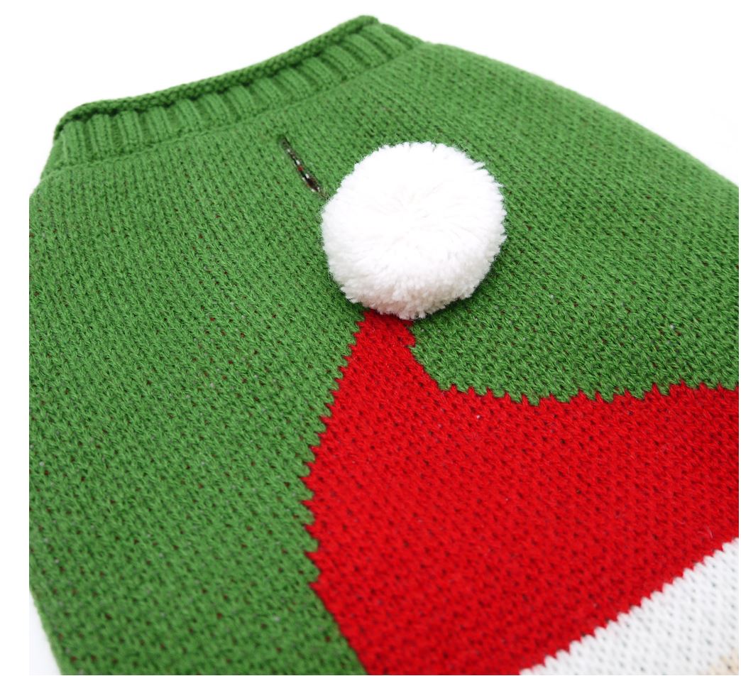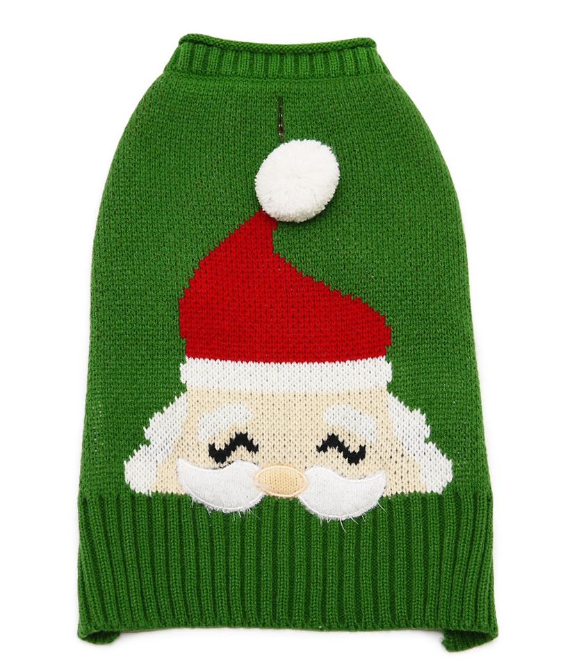 Happy Santa Face dog sweater at PUCCI! This cute sweater with a popped out pompom on top of the Santa hat adds a cute touch to your pups sweater. Comes with a leash hole for easy access to their collar or harness.