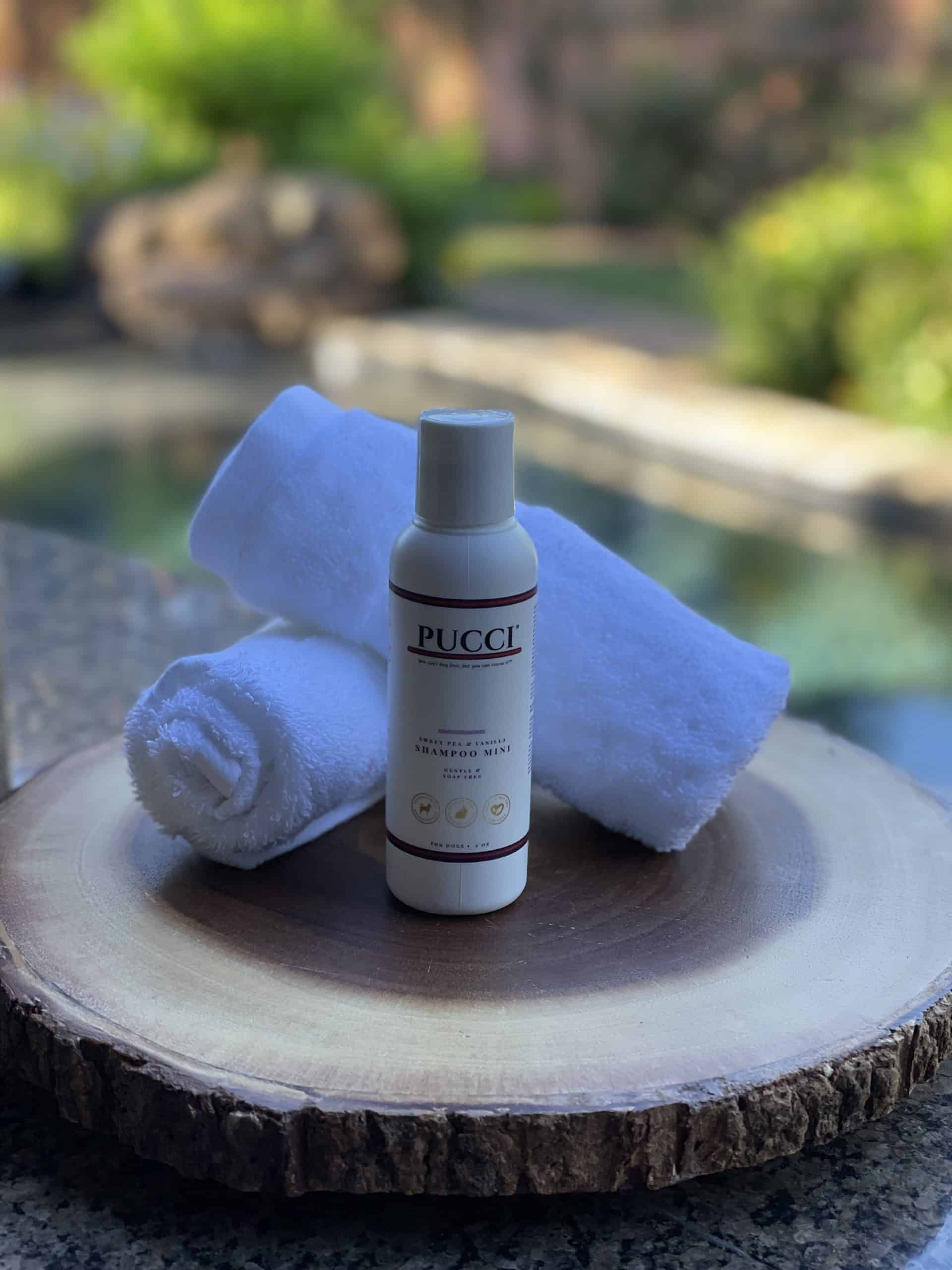 Smells just like Sweet Pea & Vanilla! A pleasantly scented, soap-free, PH balanced shampoo with odor control. This synergistically formulated deodorizing pet shampoo contains our exclusive deodorizer, Sweet Pea Infusion.