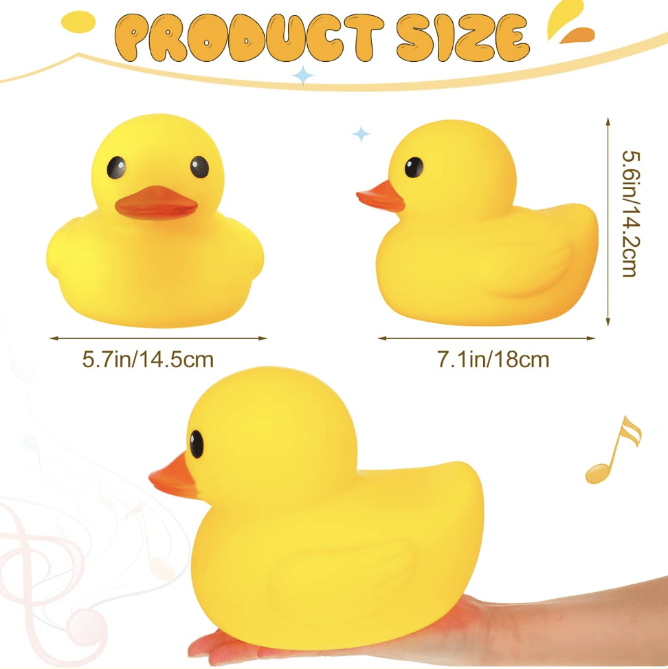 This soft, yellow rubber duck is made from quality rubber that’s safe, reliable, and resistant to breaking or fading. Measuring about 7.1 × 5.7 × 5.6 inches, it has enough air to float easily on water and features a fun squeak when pressed, making bath time more enjoyable. It also works as a cute bathroom decoration to add a playful touch.