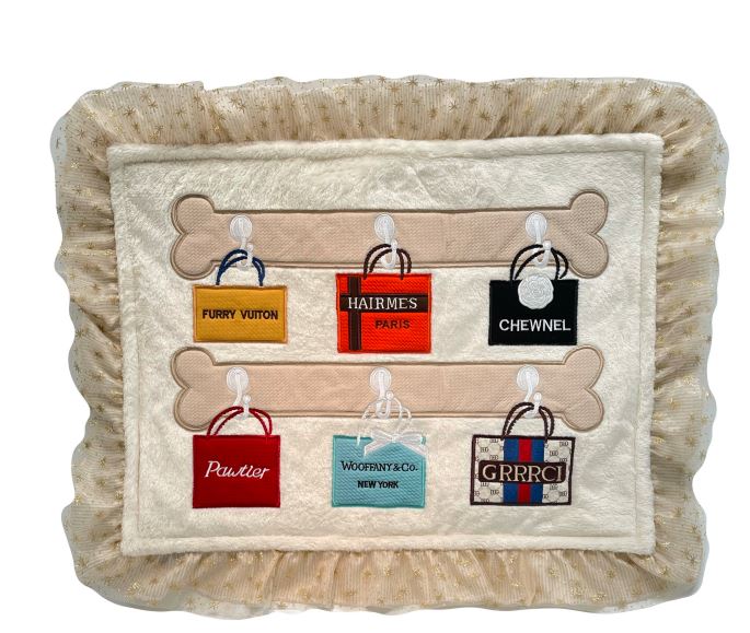 This luxury novelty designer dog mat is a parodied after various famous designers. Every pampered dog deserves to feel the luxury at home or when traveling.