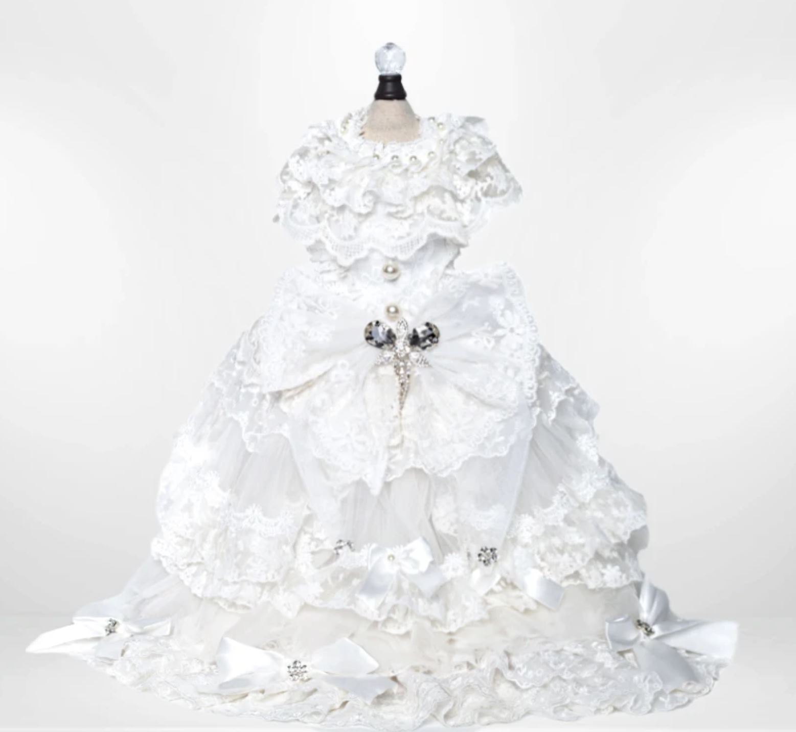 This beautiful gown is handcrafted in the U.S and elegantly detailed for that special occasion.